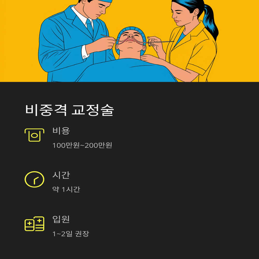 간단한 수술(고주파, 레이저)은 가능하지만, 비중격 교정술은 1~2주 회복이 필요할 수 있습니다.