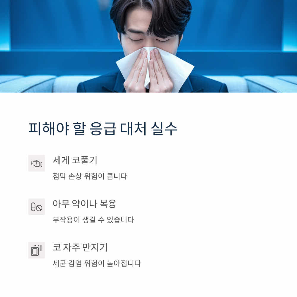 응급상황에서는 무조건 "코 점막을 보호"하는 게 최우선입니다.