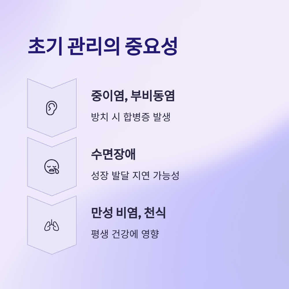 아기 비염을 방치하면 다음과 같은 문제가 생길 수 있어요: