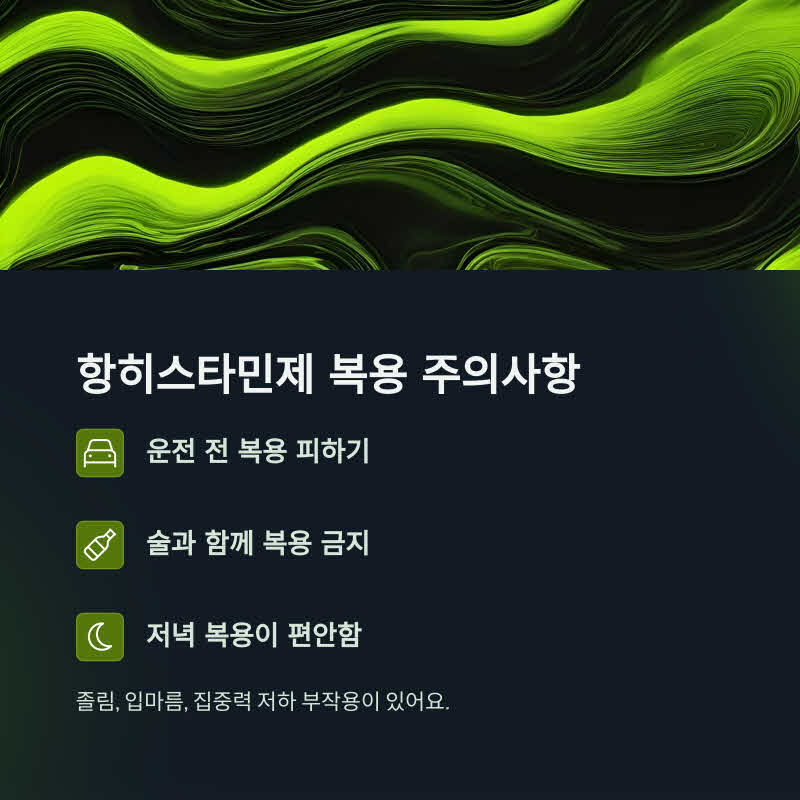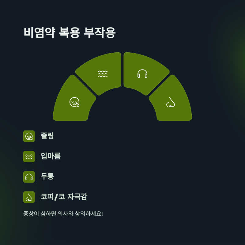 👉 졸림, 입마름, 집중력 저하 부작용이 있어요.