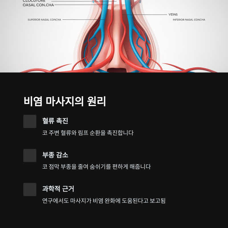 실제로 연구에서도 마사지가 비염 완화에 도움된다고 보고돼 있어요. 🔍