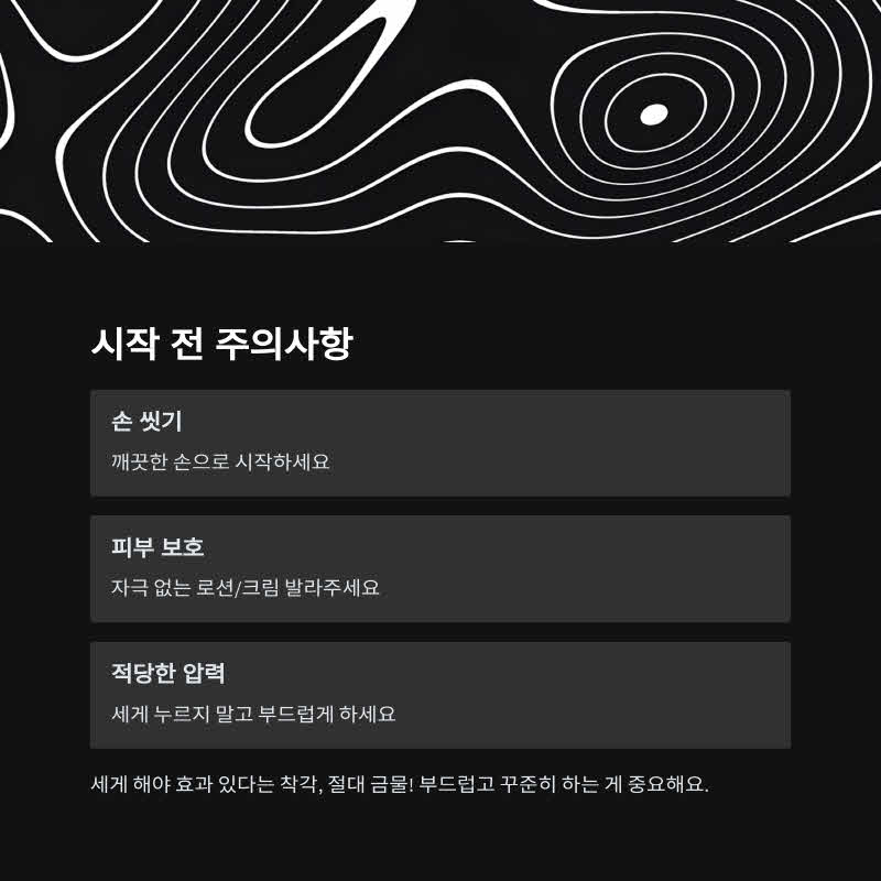 세게 누르거나 비비면 위험할 수 있어요. 부드럽게, 천천히가 원칙입니다.