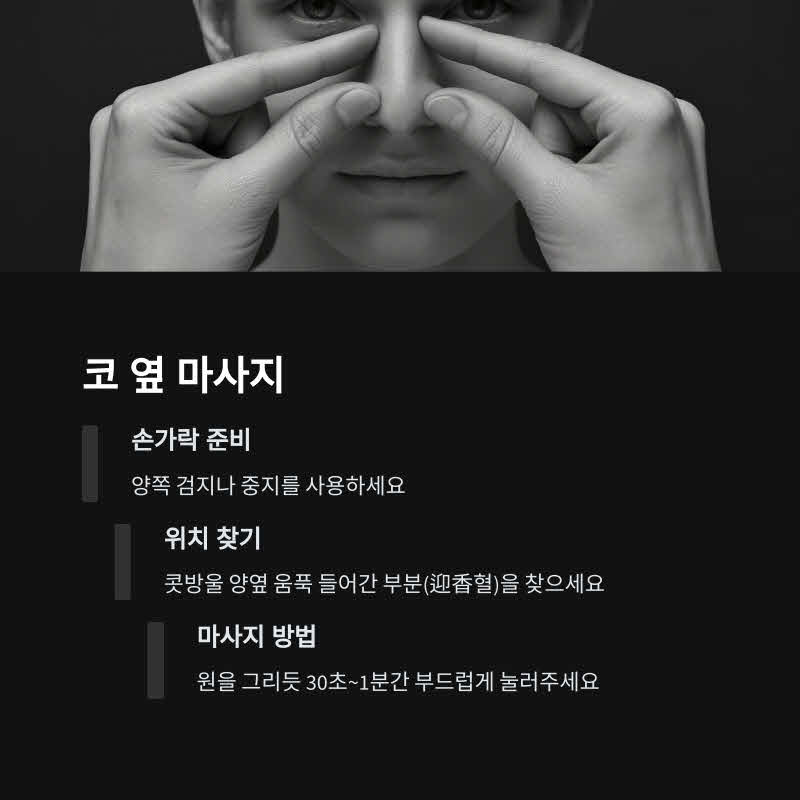 ✅ 콧등을 위아래로 천천히 1~2분 문지르기