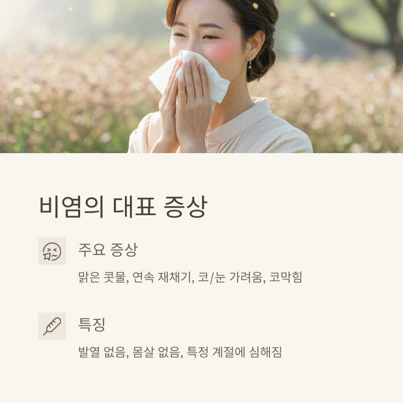 ✅ 비염: 열 거의 없음, 근육통 없음