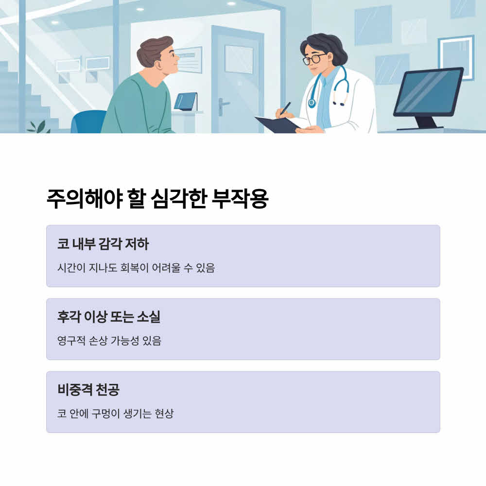 일시적으로 후각이 둔해질 수 있지만, 대부분 회복됩니다. 드물게 장기적으로 저하되는 경우도 있어요.