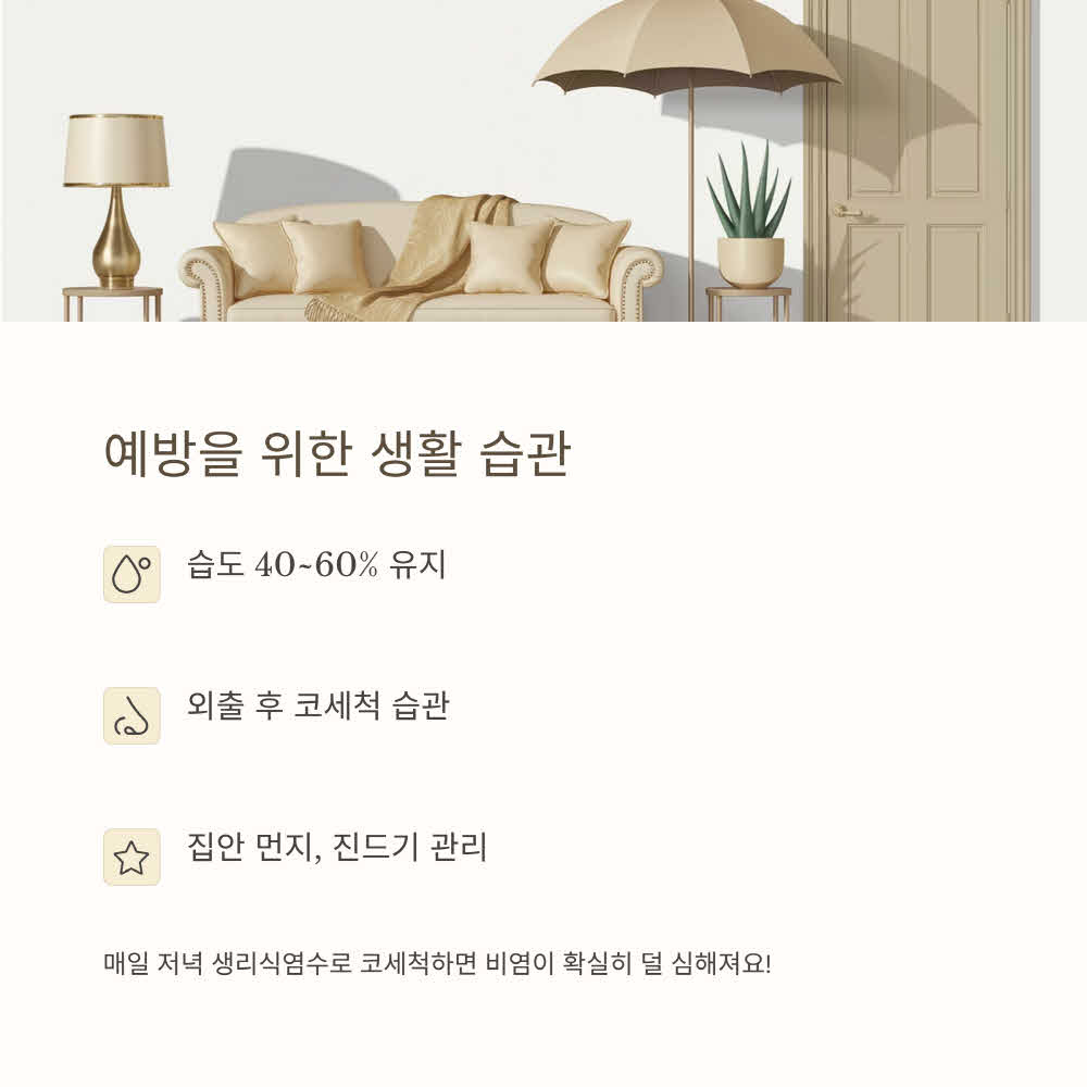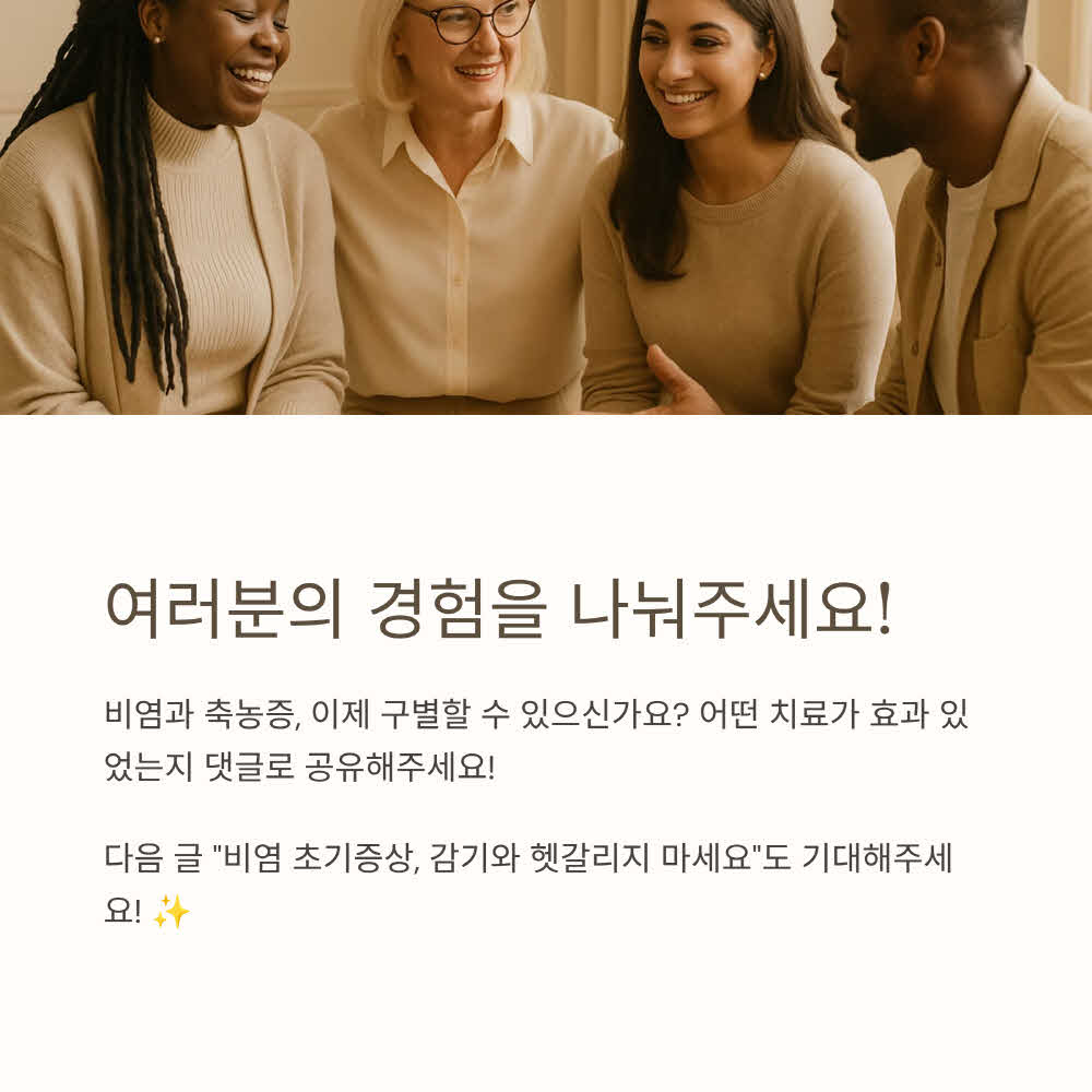 다음 글에서는 "비염 초기증상, 감기와 헷갈리지 마세요" 주제로 이어갈게요! 기대해주세요! ✨