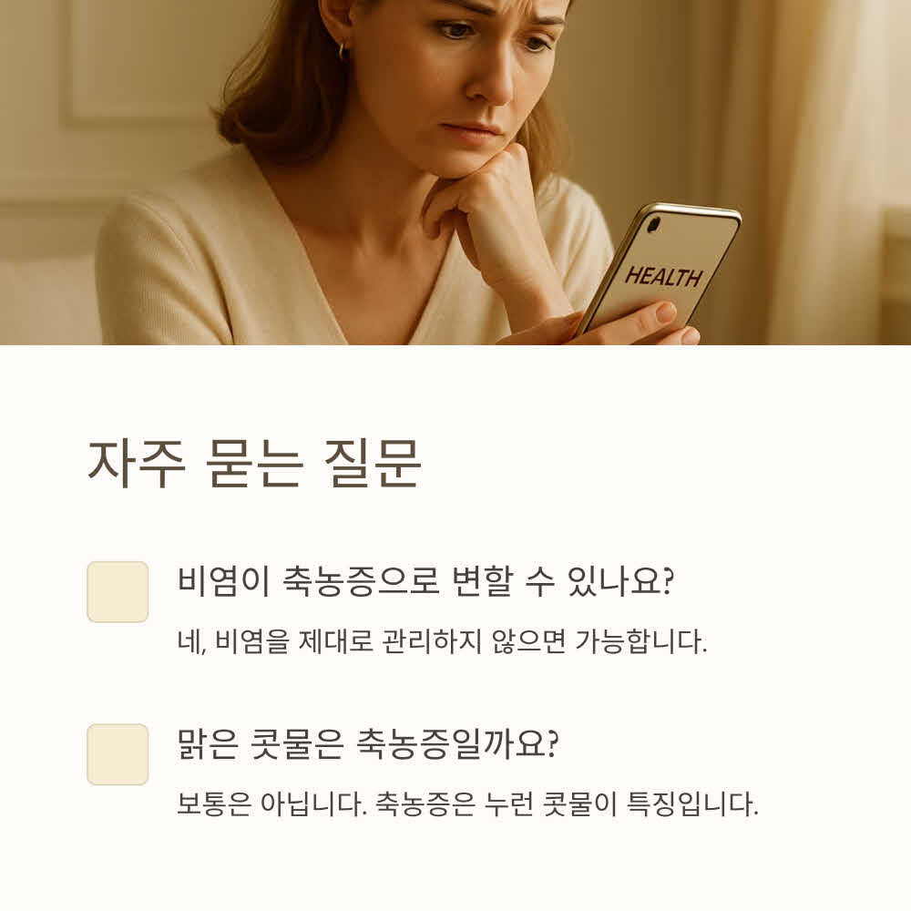 맑은 콧물이 나는데 축농증일 수도 있나요?