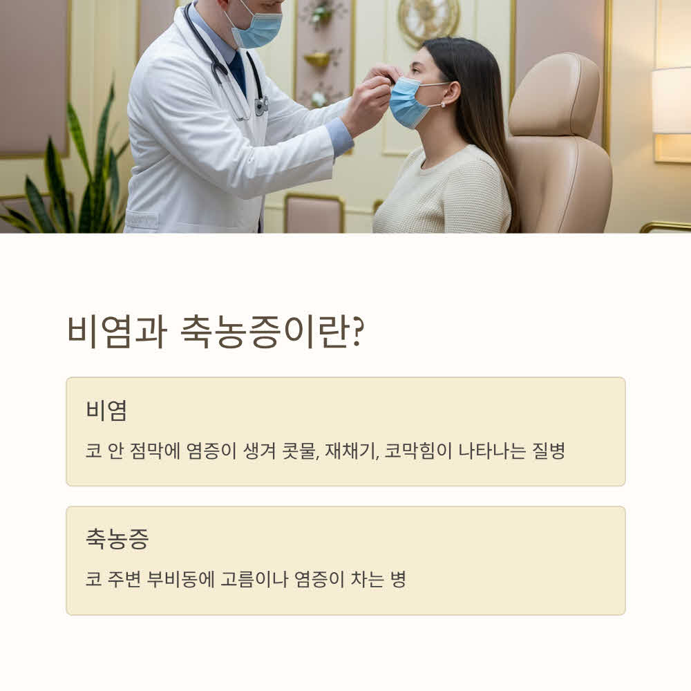 비염은 코 안 점막에 염증이 생겨 콧물, 재채기, 코막힘 등이 나타나는 질병입니다.
