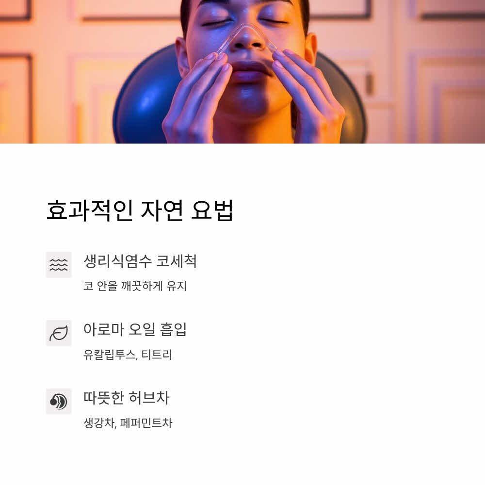 - 🌿 아로마 오일 흡입 (유칼립투스, 티트리)
